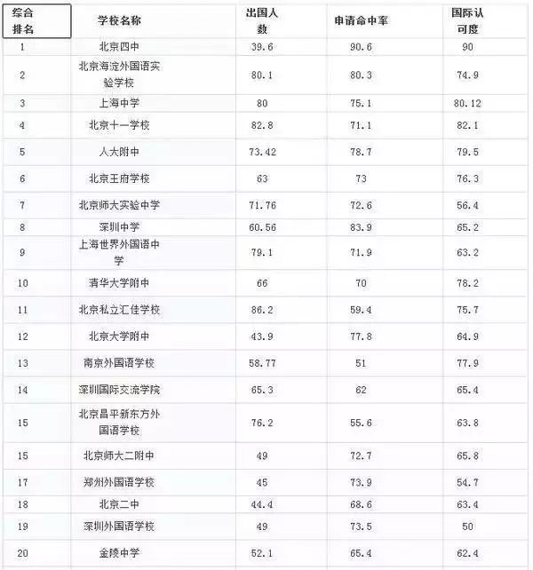 表里的13个学校,占掉113个录取名额,占比近70%。如果放眼*近5年的美国大学录取情况来看,美国*认可的前50名国内中学名单如下(中国易通网和美国联校网的统计数据,仅供参考):