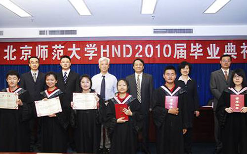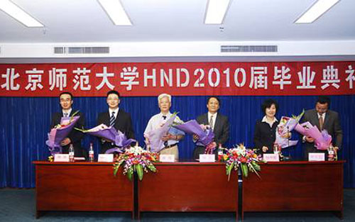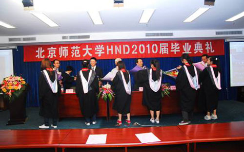 金声木铎,璀璨流年,告别青春,告别师大,三年时光匆匆而过,此去须怀报国志,不忘春风化雨情。北京师范大学英国高等教育文凭(HND)项目*一届毕业生将在这盛夏六月告别亲爱的母校,踏上他们海外留学的新征程。6月10日上午,北京师范大学 HND 2010届毕业典礼在北京师范大学京师大厦三层第六会议室隆重举行。