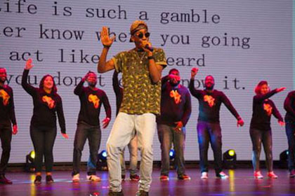 夜幕降临,世界风情展仍意犹未尽,文艺汇演又掀高潮。在B区科学会堂,文艺汇演由重庆大学与其他八所卓越大学联盟高校的留学生联袂演出,不仅有俄罗斯的民族舞蹈,也有中国的大头娃娃舞。北京理工大学留学生赵胜利一*中文歌曲《我和我的祖国》唱的字正腔圆,引来掌声阵阵。华南理工大学留学生表演的舞蹈《Afro-Modern》动感十足,顿时将现场气氛推向高潮。由重庆大学中外学生表演的旗袍秀《行之韵》舞艺精湛,时尚靓丽,惊艳全场。文艺汇演短短13个节目将中外文化的融合演绎的淋漓尽致,着实是一次世界文化的交响。