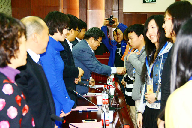 接着,SQA AD项目2010级学生代表陈欣同学和2011级学生代表边皛同学分别发言,表达了对学校和老师的感激之情以及对学长学姐的祝福之情。