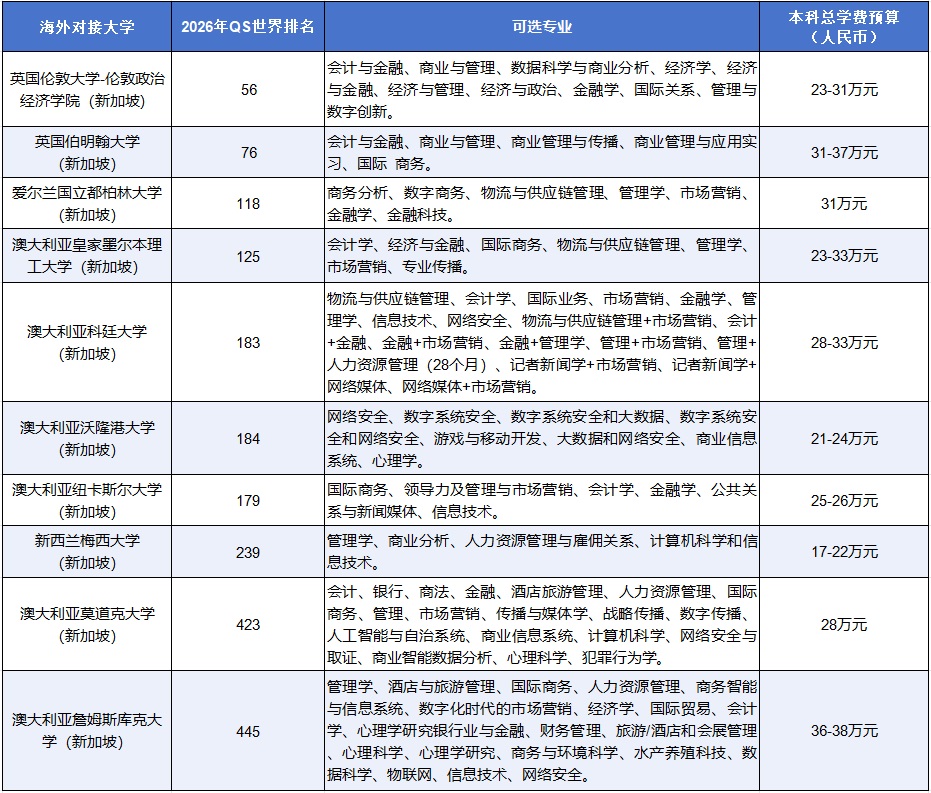 新加坡院校(部分)