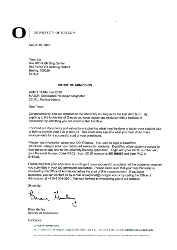刘源同学是我项目2009级学生,在贸大信息学院IAC国际课程班一年的学习提升,获得了美国俄勒冈大学的OFFER。