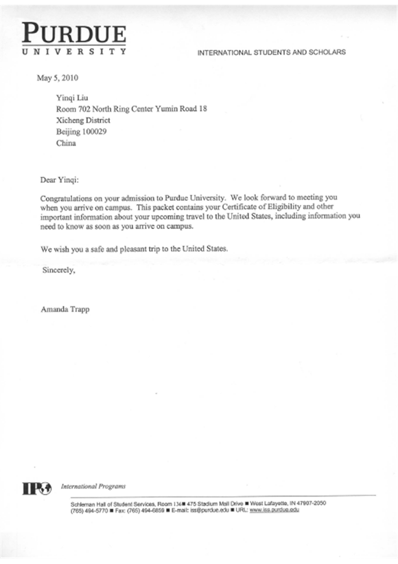 刘茵奇同学是我项目2009级学生,在贸大信息学院IAC国际课程班一年的学习提升,获得了美国普渡大学的OFFER。