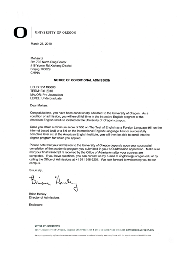 李默涵同学是我项目2009级学生,在贸大信息学院IAC国际课程班一年的学习提升,获得了美国俄勒冈大学的OFFER。