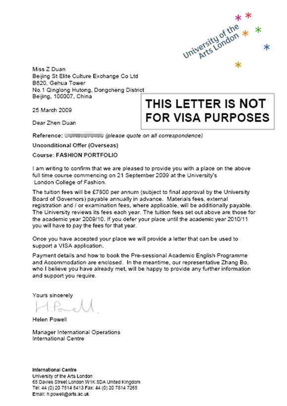 段珍同学是我项目2008级学生,经过他在对外经贸大学信息学院出国留学预科班一年的学习提升,收获了英国伦敦艺术大学的OFFER。