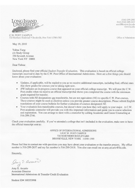 杨玉华同学是我项目2009级学生,经过他在对外经贸大学信息学院出国留学预科班一年的学习提升,收获了美国长岛大学的OFFER。 长岛大学(C.W. Post 校区New York)成立于1954年,学校规模300英亩,是美国的第八大私立大学,CW Post 校区是美国*大的私立大学之一。全日制学生和半日制学生共计8500人,CW Post 校区被认可作为一个美国的*美丽和*安全的学院校园和位于长岛的著名的金海岸。 地理位置:New York 纽约州 语言要求 TOEFL IBT: 65分以上 雅思:5.5 以上 总费用: $47,604 州外学费:$34,070 住宿费:$12,534 其他费用:$1,000 编辑于:2015-01-23 本文热度: