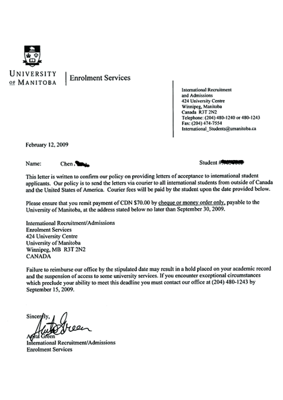 陈杨同学是我项目2008级学生,经过他在对外经贸大学信息学院出国留学预科班一年的学习提升,收获了加拿大曼尼托巴大学的OFFER。