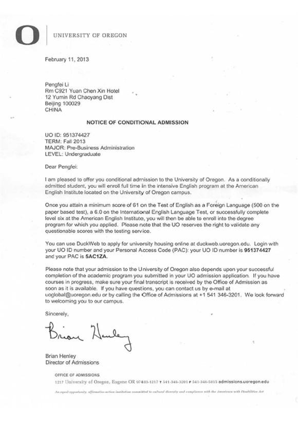李鹏飞同学是我项目2012级学生,经过他在对外经贸大学信息学院出国留学预科班一年的刻苦努力,收获了美国俄勒冈大学OFFER。