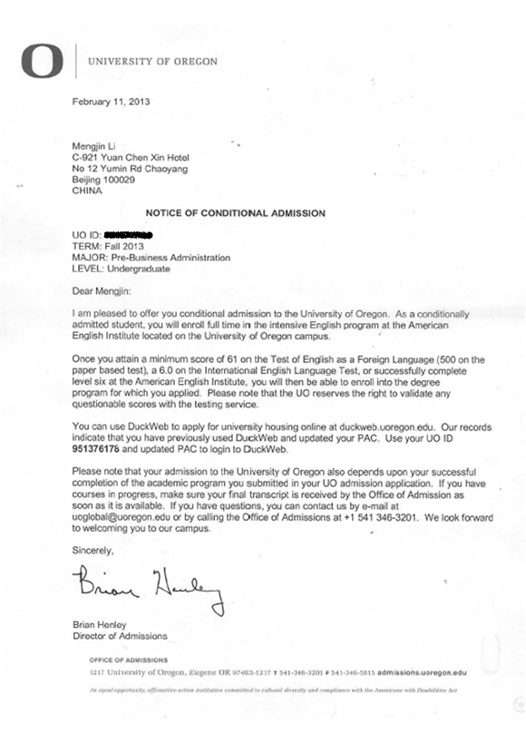 李梦今同学是我项目2012级学生,在对外经贸大学信息学院国际课程班学习一年的时间里,经过他不懈的努力,收获了美国俄勒冈大学的OFFER。
