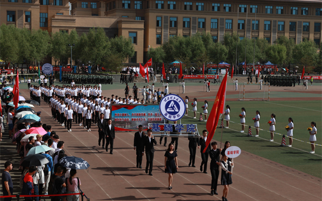 开幕式后,国旗方阵、校旗方阵、会旗方阵、军乐队、花队、旗队以及各学院代表方阵依次入场,精神饱满、口号铿锵、步伐整齐地从主席台前走过,展现了理工大人昂扬向上、拼搏进取的体育精神。 “党团先锋”“学风示范”“勤工榜样”“志愿服务”“创新表率”“学子骄傲”六个主题展示方阵,是对我校贯彻落实全国高校思想政治工作会议精神,实现全员育人、全过程育人、全方位育人、全课程育人、全媒体育人成果的全面展示。随后,大会举行了升国旗仪式。
