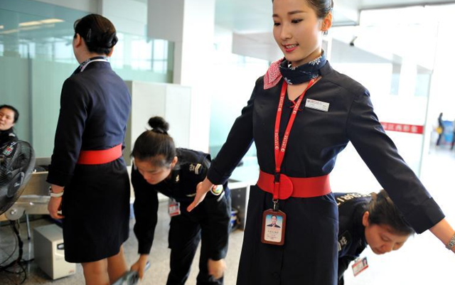 机组人员通过安检