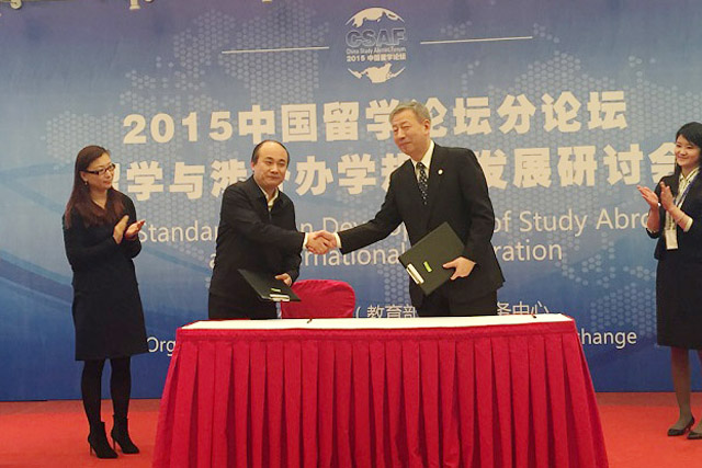 留学服务中心/北京第二外国语学院于2015年3月20日正式签署协议建立战略合作伙伴关系。作为我国知名重点外语类大学的北京第二外国语学院依托自身的优质教育资源,研制出一套与国际先进教学接轨的教学模式,以二外的外语教学为基础,专业教学资源为依托,培养社会所需求的国际化、高层次、复合型人才。二外充分利用与国外教育机构联系广泛的优势,为我国学生顺利出国留学提供了全方位的教学和服务。留学服务中心对大学本科国际课程项目的建设予以政策性指导并提供相关服务,北京第二外国语学院负责项目的招生、教学和学生管理。