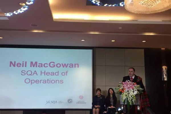 SQA-HND国际部主任Alistair Shaw 先生、运营总监Neil MacGowan 先生以及教育*留学服务中心国际合作处副处长秦岚女士对荣获"理想大使"的同学们进行表彰,并分别发表赠言与寄