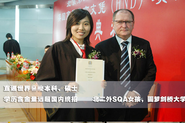 北京第二外国语学院SQA-AD项目属于中英*府间的合作项目,教育*留学服务中心负责学位认证。学生在国内三年学习期间,学籍注册于中国(教育*)留学服务中心及英国苏格兰学历管理委员会(SQA)。