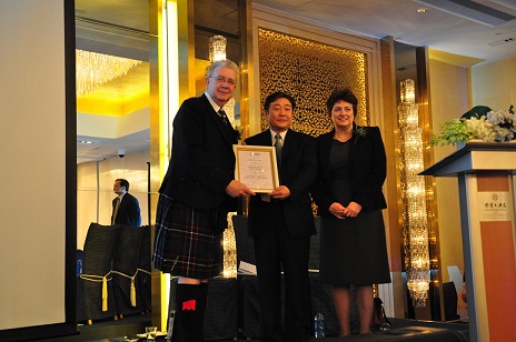 苏格兰教育与终身教育内阁大臣迈克尔·拉塞尔、SQA总裁珍妮特·布朗博士为北二外SQA-AD项目中心颁发教学质量杰出中心荣誉证书,成为中国获此殊荣的两所高校之一。