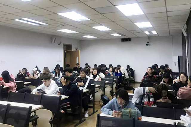 等待面试的同学们,在候场教室激动而又紧张的准备自己即将开始的面试。