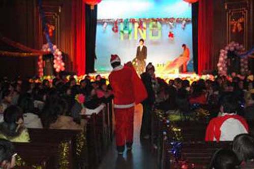 2009年12月25日晚,我院HND中心07、08、09 三届师生在辅仁大学礼堂共庆新年晚会。院长包华影、副院长曾文艺、党总支副书记张林、院长助理纪会议、培训部主任马向辉、HND项目主任卓举纲等有关负责人出席了本场晚会。