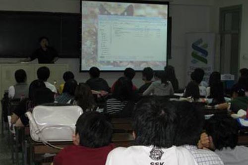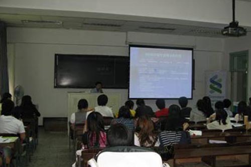 之后,北京凯华航空航天有限公司的客户经理陈研彦先生向同学们介绍了关于飞机航班路线的一些情况及机票预定方面的信息,同学们可以享受团购的优惠价格。