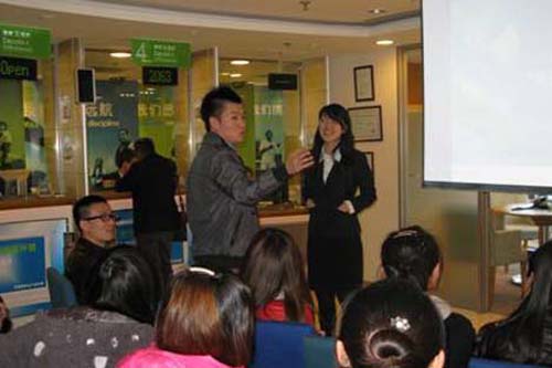 渣打银行负责培训的李铣女士充分调动起同学们的积极性,他询问大家将来的就业方向,她向那些未来金融界的“同行”问好,大家一下子被她逗乐了。她告诉大家 渣打银行英文名字的由来,“Standard Chartered Bank ”是在维多利亚女皇的特许(即“渣打”这个字的英文原义)下于1853年建立的,渣打银行在发展中国家的银行中拥有高水平地位,在全球拥有1400多家分支 机构,遍布世界56个国家,是*早在中国设立分行的外资银行之一(1858年),并且从未中断过在中国大陆的业务运营。她为大家讲解了银行的组织构成,包 括集体架构和支行架构等。渣打银行的社会责任是“Seeing is believing(看得见的希望),Living with HIV(关心艾滋行动)”,在悠久的历史中形成了自己独特的企业价值观,不仅致力于为世界提供更好的金融服务,也以其人道主义理念承担着企业的社会责任。