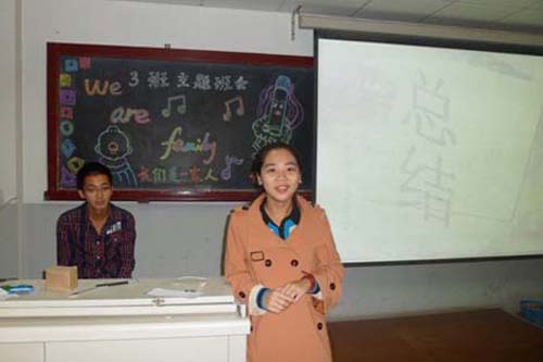 阵阵掌声不绝于耳,将班会气氛推向高潮。接下来,一组组军训、秋游的照片展示在大屏幕上,表现出同学们坚强、活泼的一面。