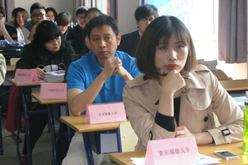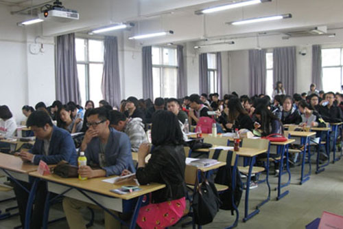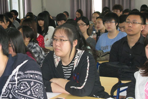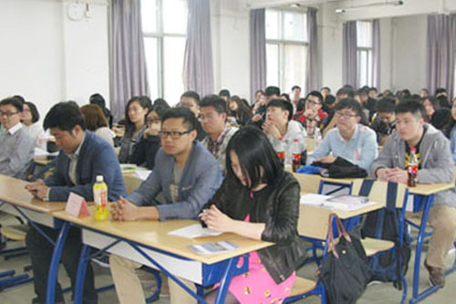 4月1日下午1点半,北师大教二312教室高朋满座,2014年CSCSE—SQA  HND项目毕业生出国留学行前准备会即将在这里召开。参加此次准备会的有留学服务中心SQA HND项目负责人韩三军先生,留学服务中心国际处冯若冰先生,留学服务中心留学组负责人刘旭光老师,以及留学组的其他老师,受邀外国院校负责人,HND中心部分老师及11级的全体同学们。留学准备会分为行前准备讲座和外方院校展会两部分。
