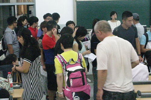 接下来是缴费、资料审核、照相等相关手续,为方便学生和家长,HND中心的老师们在化学楼大厅摆了一排桌子,大家只要按照顺序,就能够以*快速的完成缴费程序,然后进入教室进行资料审核、照相,并等待前往军训基地。大厅的横幅上写着“热烈欢迎北师大2014级HND新同学”,电子屏幕上是报到的流程,墙上还贴着教室的指示方向。走进化二教室,大家会立刻被这里的温馨和热闹所感染,屏幕上播放着北师大和HND中  心的宣传视频,前排的老师们正在回答着学生和家长的各种疑问,有些同学还利用等待的时间和家长一起认真的看着军训注意事项和学校作息时间、课堂要求等。对  于很多同学来说,这是他们*一次离开父母独自生活和学习,而HND中心老师和同学们的细心与热情,无遗为他们留下了良好的*一印象。
