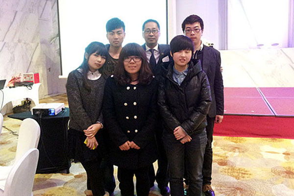 2012年11月14日晚18:30,10级金融班的五名同学与外联部老师一起参加了英国索尔福德大学在朝阳悠唐皇冠假日酒店举办的招待会。