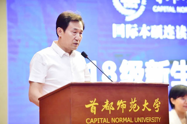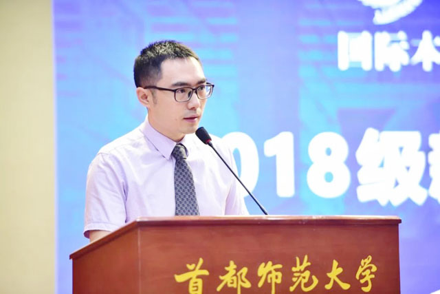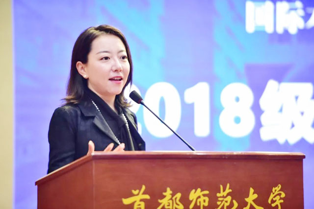 刘院长代表首都师范大学对2018级国际本硕连读新生的到来表示热烈的欢迎,她向同学们介绍了首师大本硕连读项目十年来的办学历史及取得的成就。她说大学四年的美好时光即将开始,为此刘院长给学生们提出了三点希望: