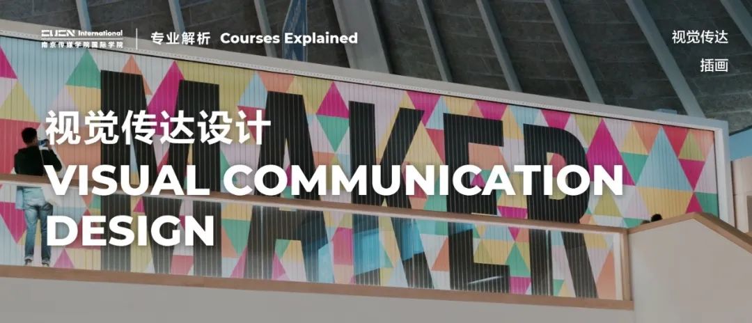视觉传达:视觉传达设计是一种产生并传播视觉文化的艺术。视觉传达专业的学习将使你成为一个多才多艺的平面传播设计实践者,从纸张到屏幕,从数字环境到公共空间的各种媒介和载体。从专业广阔的视角来看,你不仅会学习技术和概念技能,还会参与社会文化活动,理解设计塑造人类行为的力量。