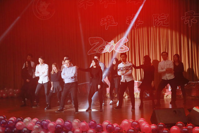 随后,项目管理办公室的老师,在主任刘艳琴老师的带领下,以一曲相亲相爱一家人将学院国际部以爱为本的理解表达的淋漓尽致。简洁的服装使得女老师清丽无匹,男老师更加精气高亢。歌曲时间虽短,但留下的靡靡之音,始终萦绕在会场,未曾消逝。