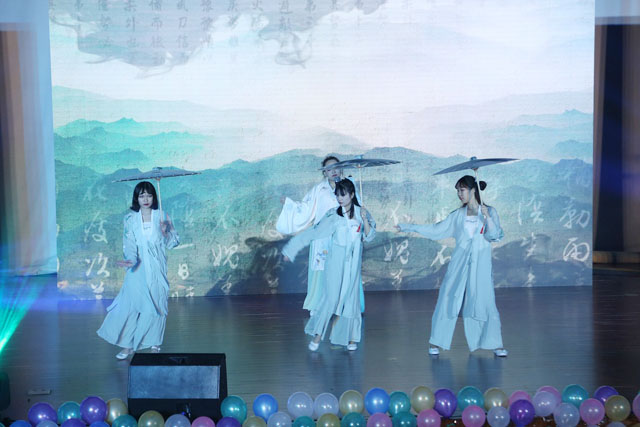 动感激情的开场舞把现场气氛彻底点燃,观众们跟着旋律挥舞着荧光棒,台下一片璀璨。每逢佳节倍思亲,三班同学的歌舞剧《但愿人长久》让同学们陷入思乡情。从古至今”礼”都是中国传统美德,传统文化节目《礼》包含了中国古典服装;旗袍以及中国经典文化:茶文化。让我们深切感受到中国传统文化的博大精深。经典的总是让人回忆的,经典的电影片段在舞台不断呈现,将现场带入深深的回忆之中。一班同学穿上高中时代的校服,唱着你曾是少年,大屏幕上滚动着同学们的照片,眼眶不知不觉充满泪水,脑海中回忆着自己的十七岁……不论是精彩的歌舞,节奏感强烈的杯子舞,独具特色的茶艺表演;还是中间穿插的令人激动的抽奖环节,经典的电影片段回忆,激起年少回忆的大合唱;或是反串的经典悲剧《哈姆雷特》都给人留下了深深的印象。
