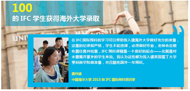 为了适应中国学生赴海外留学需求,海大海外交流中心引入由东西方国际教育开发的IFC(International Foundation Certificate)国际本科预备课程(1+3模式 ),目前已有英国、美国、澳洲、加拿大、荷兰、、新西兰6个国家160余所海外院校认可该课程。中国高中毕业生通过在国内一年 IFC课程的学习,可以直接出国就读海外茗校大学课程, 并有300多个热门专业供选择,是目前国内*便捷的海外茗校留学直通车。