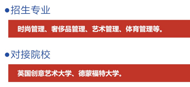 为了满足更多艺术类学生留学海外的求学需求,在中国教育*留学生服务中心的支持与指导下,青岛大学与英国创意艺术大学等多所高校签署协议,开设艺术管理人才培养项目。学生在青岛大学学习两年,涵盖雅思语言课程及部分可获外方院校学分豁免的非核心课程/专业课程等,在青岛大学的阶段性学习结束后,成绩合格并符合国外大学入学要求的学生将可赴国外学习,注册国外大学学籍后,攻读国外院校相应的课程,成绩合格取得国外大学学士学位。