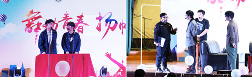 兰花指捻红尘似水,三尺红台,万事入歌吹——一曲《牵丝戏》,两位古装美人儿为现场观众带来了一场视听盛宴,歌喉低回婉转仿佛穿越回了古代。人生如戏,全靠演技——精心编排的相声、小品《四门功课》和《一个姑爷半个儿》,同学们大秀演技,说学逗唱样样精通,现场满载欢笑与感动。