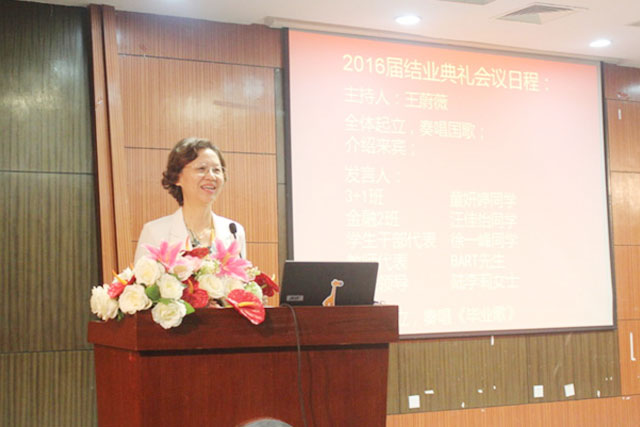 来自13级的学生代表童妍婷和14级的汪佳怡满怀深情地回忆了在国际教育中心两年的学习和生活。她们说道,在过去两年中,大家感受了大学浓郁的学习氛围,体会了学习的艰辛,更培养了同学之间真正的友谊。学生班干部代表徐一峰代表全体同学向老师、家长表达了由衷的谢意。他表示,两年的学习使他们得到了锻炼,增长了才干,变得成熟,为人生的发展打下了基础。