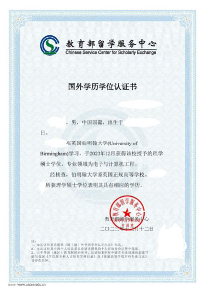 学生在国内及海外进行双注册;每年国内和海外审核双监督;英方统一考核标准,形成性评价方式;合作海外院校,毕业生所获海外学位证书均可在中国留学服务中心进行学历学位认证。