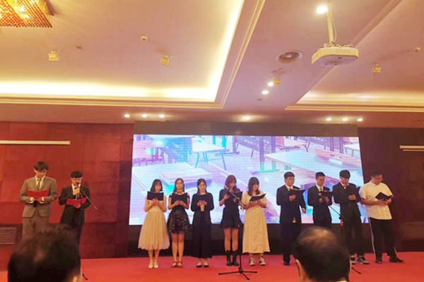 后新生们献上了精彩的文艺汇演,英文朗诵、笛子伴唱、英文小组唱等精彩的演出博得新生们的阵阵欢呼,刚入学的紧张感也一扫而空。结尾部分以《我和我的祖国》高潮作结,现场所有新生和家长代表与演唱人员一同高唱,场面十分震撼,国际本硕预科用这场别开生面的活动迎接2020级新生,表达爱国之情的同时也为新生们带来了一场“沉浸式”的爱国思政课体验。