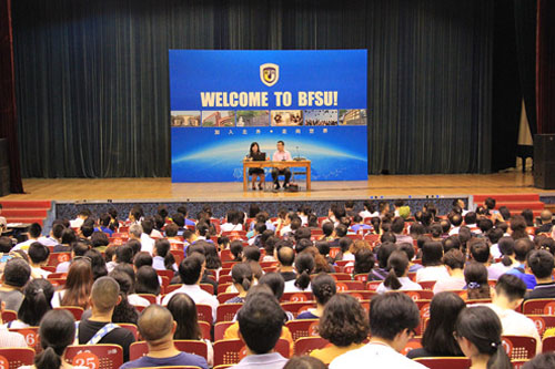 招生办、教务处、就业创业中心等相关职能部门和各本科招生院系参加活动,向考生和家长介绍了学校办学特色、人才培养模式和招录政策等,并现场解答了考生和家长关心的问题。教务处处长金利民详尽地讲解了学校的本科人才培养模式,就业创业中心主任孙眉为考生带来了《北京外国大学毕业生职业生涯发展》的报告,招生办主任许晔发布了北京外国语大学2017年的招生政策并进行了详细解读。