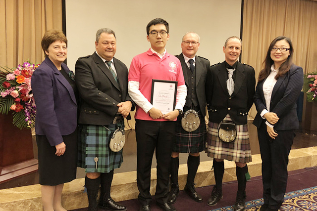 2018届毕业生史中辉同学荣获SQA颁发的理想大使称号。