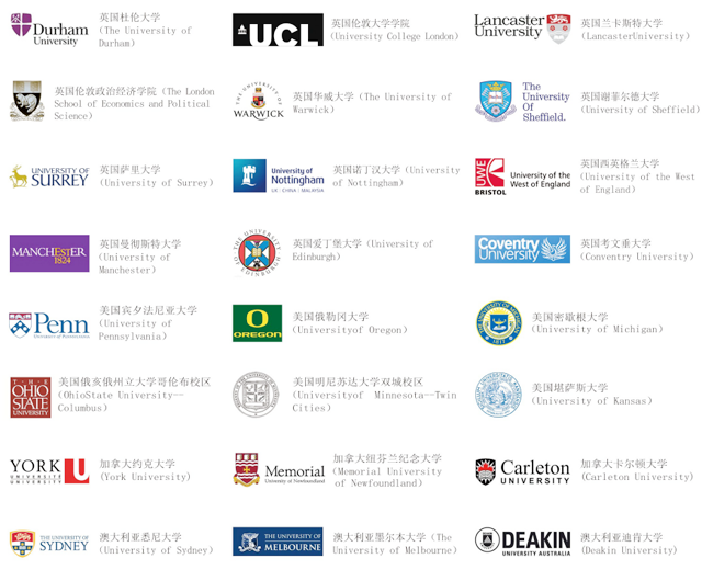 目前,多国留学本硕连读项目已与世界上13个国家110余所大学建立了合作关 系,部分院校如下