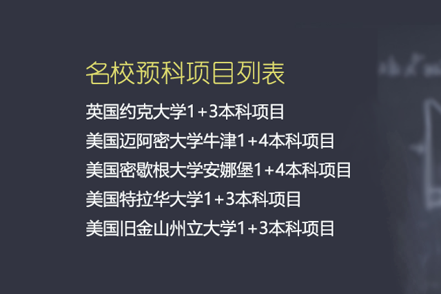 该项目不仅帮助学生在*短时间内满足国外大学录取条件进入本科专业学习,也为学生在正式出国前对国外高校的教育方式和生活方式提供一个提前适应和过渡的优质平台,解决了高中生直接出国由于年龄低、独立生活能力弱和语言不适应而产生的困难,成为高中毕业生留学美国、加拿大、英国、澳洲等国家的便捷之路。