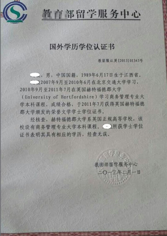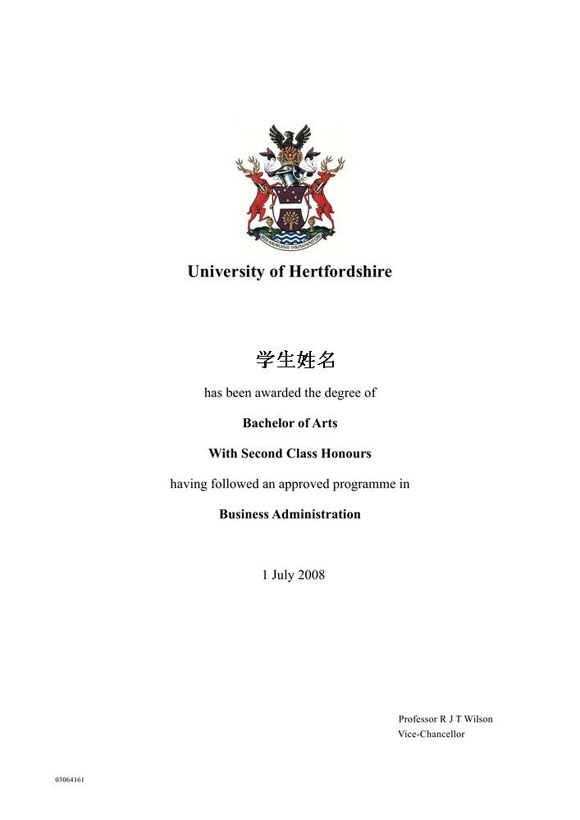 英国赫特福德大学学士学位证书