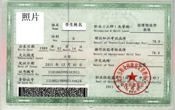 HND项目配发的人社部职业资格证书