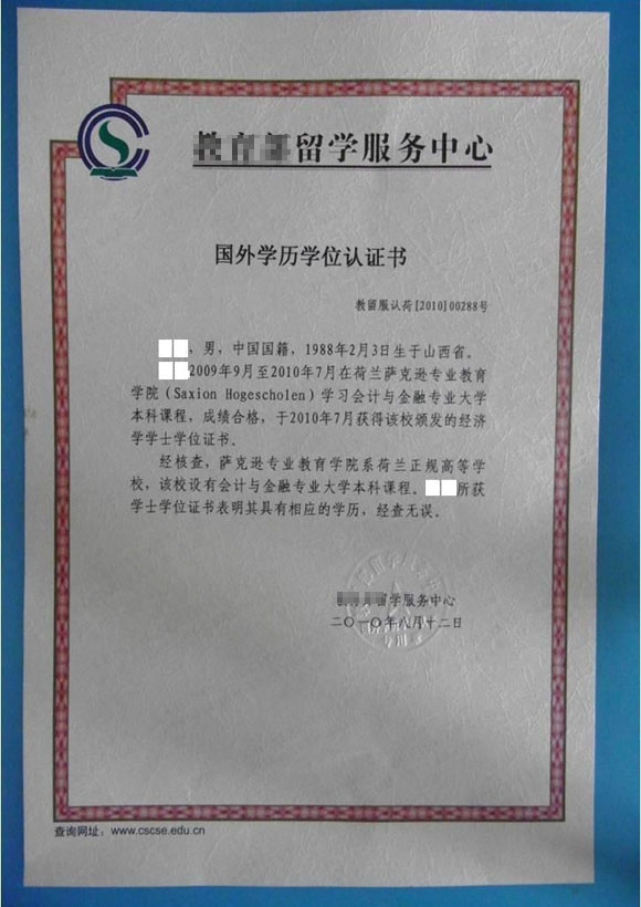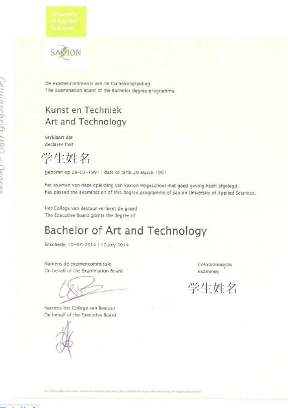 荷兰萨克逊大学学士学位证书