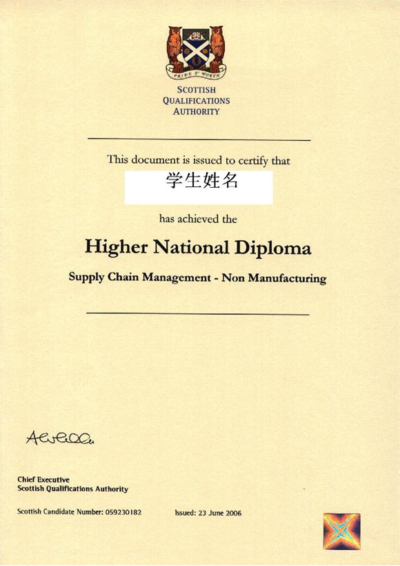 英国高等教育文凭项目(SQA HND)证书