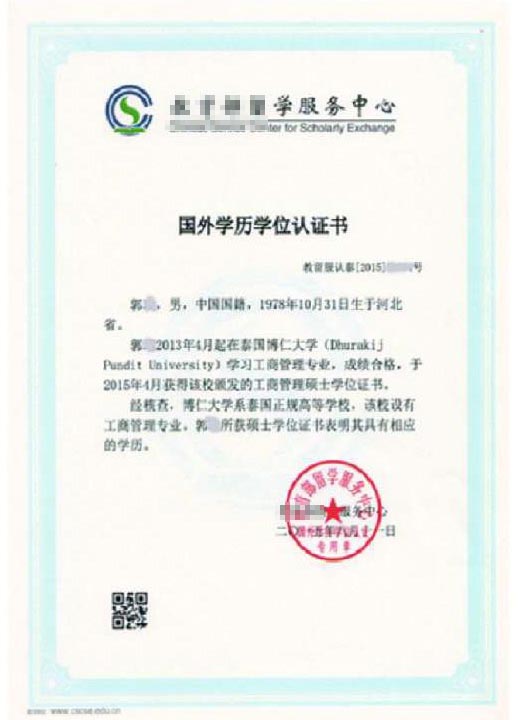 毕业授予博仁大学硕士研究生学位证书