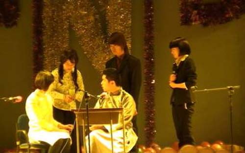 包院长*先为晚会致辞,她亲切的话语立刻把同学们带入庆祝新年的欢快气氛中,她还即兴演唱了奥运会主题歌《我和你》,更是带动了现场全体师生的的情绪。