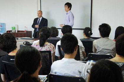 中国传媒国际本科项目教学主任陈光老师介绍了国内的教学安排,从英语教学到专业教学的组织。严格的学生管理、专业的师资队伍是保*项目学生顺利出国、保*项目品质的*重要因素。