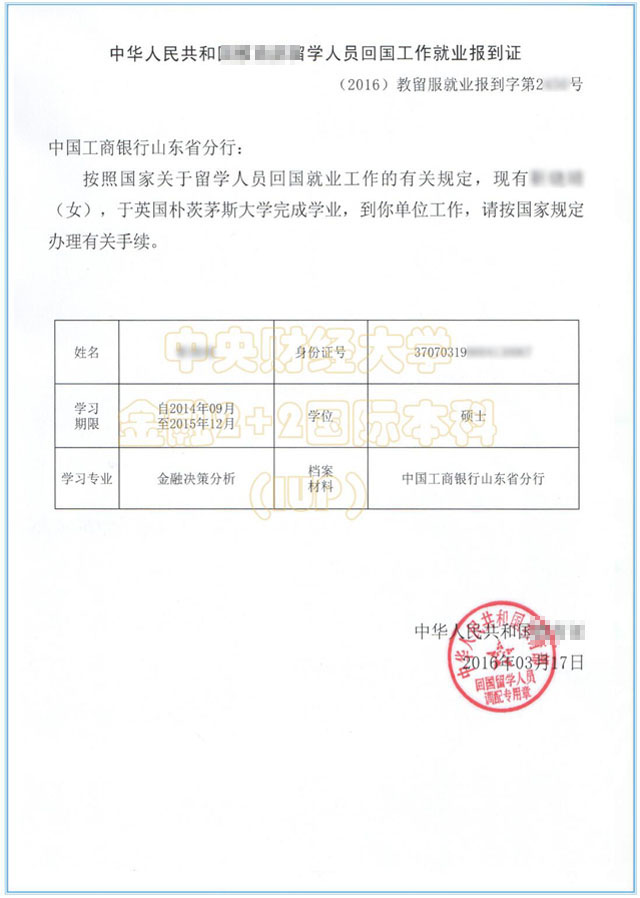 就业报到证(样本)