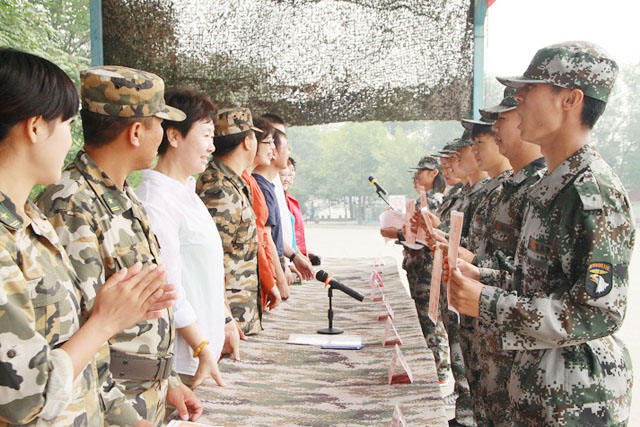 随后,校领导依次为本次军训中获奖的优秀学生进行表彰。